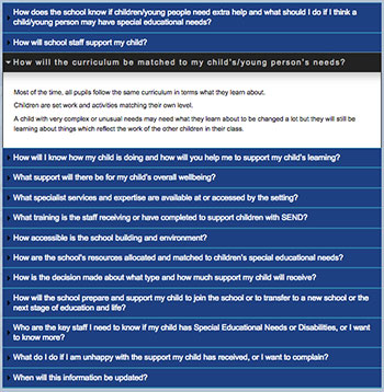 This feature is especially useful for presenting curriculum information, term dates, and local offer for Special Educational Needs information.